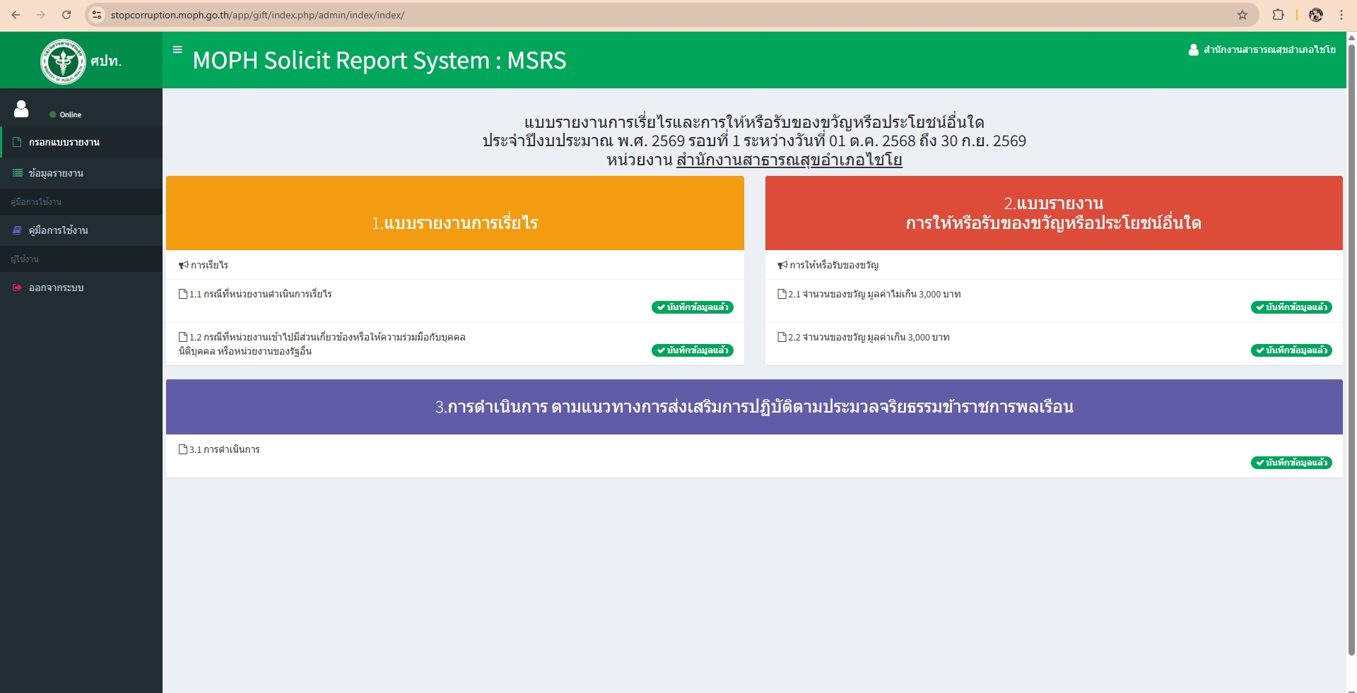 MOIT19 หน่วยงานมีการรายงานผลการส่งเสริมการปฏิบัติตามประมวลจริยธรรมข้าราชการพลเรือน : กรณีการเรี่ยไรและกรณีการให้หรือรับของขวัญหรือประโยชน์อื่นใด ประจำปีงบประมาณ พ.ศ. 2569